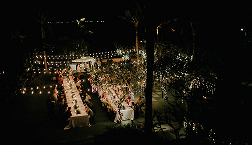 What a unique position Arnalaya Beach House holds on the beachfront at Canggu.  Indulge in the sunset-facing terraces and romantic ocean-front balé, or make a pathway of candles through the lawns littered with flower petals.  This is a phenomenal canvas on which to paint your special affair.  It could be a wedding, or even a corporate event given the simple nature of the dining room that could slip into boardroom duties under the expert hand of the villa manager.